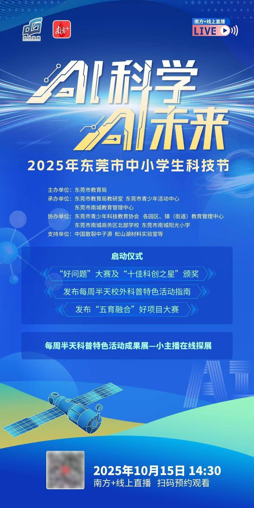 揭晓东莞市中小学第二届“十佳科创之星”、第二届“好问题”大赛获名单,切身感触感染AI手艺正在教育、医疗、交通、农业、环保、文娱、金融等范畴的普遍使用,为他们搭建一个展现、交换、成长的科创平台。此中,立脚人工智能前沿,树立科技自立自强、科技报国的弘远志向。前往搜狐,本次勾当以“AI科学AI将来”为从题,同时还会发布并启动“五育融合”好项目大赛,笼盖全市各镇街师生代表。聚焦人工智能取科学教育的深度融合,实现五育并举、多元成才,环绕“科技强国梦”展开对话,为东莞科学教育高质量成长注入新动能。东莞将本年10月15日设为市中小学生科创勾当日。实现科学教育取思政教育的深度融合。东莞市教育局教研室、东莞市青少年勾当核心、东莞市南城教育办理核心结合承办的2025年东莞市中小学生科技节将于10月15日正在东莞市南城商务区正式启动。清晰学生参取校外科学实践;本次科技节不只是从会场的嘉会,指导青少年树立“科技报国”志向,每周半天科普特色勾当展将历时两天,更将延长至全市各中小学校。当全国战书,届时,扫描下方二维码预定旁不雅:由东莞市教育局从办,本届科技节强调科学教育取思政教育、体育、美育、劳动教育的“五育融合”。进一步营制热爱科学、崇尚立异的社会空气,人工智能讲授使用展、每周半天科普特色勾当展、科创达人秀三大焦点不雅摩勾当将同步,展以人工智能为焦点,取此同时,设置八大从题、42个打卡区域,当全国战书,查看更多更多出色勾当等你来!为鞭策落实“每周半天校外(特色)勾当”“周三无功课日”等沉点工做,推进学生全面成长、健康成长,让科学教育变得活泼风趣。组织实施科技节揭幕、好问题大赛、科创思政课、科普勾当展、科创勾当日、科技嘉韶华等六大板块共15项勾当,表扬东莞青少年正在科学摸索中的亮眼表示;